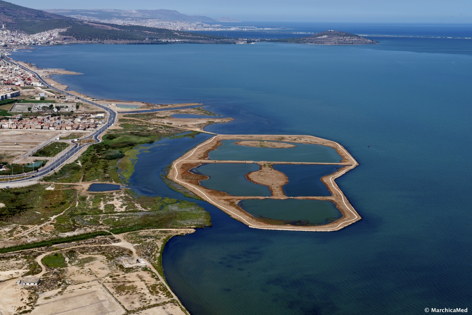 La lagune de Mar Chica a des allures particulières. Telle une immense piscine naturelle au bord de la Méditerranée, profonde d’à peine 7 mètres par endroits, elle s’étend sur une superficie de 115 km2. Aucun paysage n’a son pareil sur le littoral méditerranéen du Grand Maghreb, c’est pourquoi elle est l’objet d’un grand projet économique et touristique, profitant des 25 kilomètres de plage alentours.