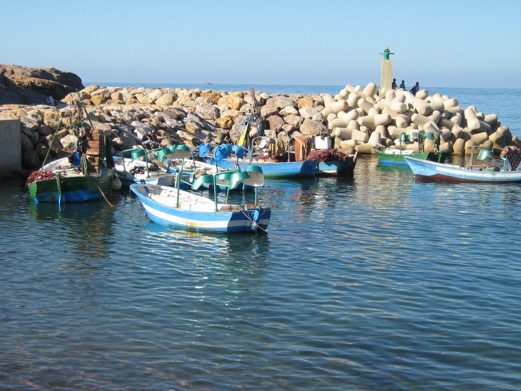C’est en suivant la route ondulante qui longe la mer et descend la montagne que l’on trouve la petit port de Sidi Hsain. La plage, protégée par deux falaises, abrite les cabanes de pêcheur auprès de la digue. De bonne heure, on peut voir les pêcheurs, en retour de mer, les caisses chargées de poissons et de crustacés.